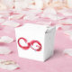 Infinity symbol of continuous stream of red wine pouring into glass wine glass on white background.