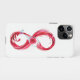Infinity symbol of continuous stream of red wine pouring into glass wine glass on white background.