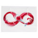 Infinity symbol of continuous stream of red wine pouring into glass wine glass on white background.