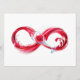 Infinity symbol of continuous stream of red wine pouring into glass wine glass on white background.