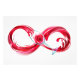 Infinity symbol of continuous stream of red wine pouring into glass wine glass on white background.