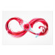 Infinity symbol of continuous stream of red wine pouring into glass wine glass on white background.