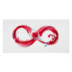 Infinity symbol of continuous stream of red wine pouring into glass wine glass on white background.