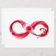 Infinity symbol of continuous stream of red wine pouring into glass wine glass on white background.