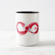 Infinity symbol of continuous stream of red wine pouring into glass wine glass on white background.