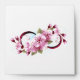 Symbol of infinity with flowers and leaves of blooming sakura blossoms on light background, painted with blue paint. The symbol of infinity. Sakura blossoms. Tattoo style. Hanami