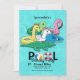 A summer-theme invitation perfect for a pool party for the "young set". It features pool toys in the form of a giraffe, unicorn, turtle, flamingo, shark and alligator. (<a href='http://www.freepik.com/free-vector/inflatable-animal-pool-toys_894996.htm'>Designed by Freepik</a>). <br/><br/>The card is easy to customise with your wording, font, font colour and choice of six paper types.<br/><br/>Not exactly what you're looking for? All our products can be custom designed to meet your needs at no extra charge.<br/><br/>Simply contact us at askcottonlamb@gmail.com<br/><br/>Coordinating products available: