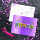Unique personalised birthday postcard design featuring the text HAPPY written in a 3D inflated typography paired with a fully customisable hand written script and sparkles in matching colours on a purple metallic background.