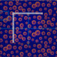 Fabric covered with influenza viruses rendered to look like an electron microscope. Colored in neon orange on a dark blue background.