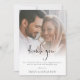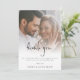 Informal Script Photo Engagement Thank You. A modern design to say thanks after your engagement party, with elegant set script with heart swashes for Thank you, beneath your photo at the top and the rest of the text you can easily personalise. Choose a photo of you both and replace the sample photo in the template placeholder with it.