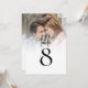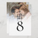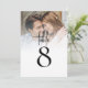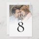 Informal Script Photo Overlay Table Number. Simply replace the sample image with your own and easily personalise the table number. The same design is on the other side and will update simultaneously as you make your changes.