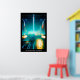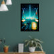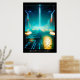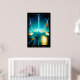 Futuristic, sci-fi illustration with a synth wave, 80s vibe.