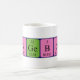 Ingeborg spelled out as I N Ge B O Rg (Iodine Nitrogen Germanium Boron Oxygen Roentgenium) on a mug for the scientist in you.