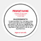 Round product label with ingredients list and maker info. Edit all text and change the colours if you like, or add a background colour. Template text for product name, company or maker info, ingredients, and a slogan or more info line at bottom. Great for homemade or very small business products, mixes, foods or other products that you create. Useful for a small catering company or personal chef, or for anyone who creates food products for gifts or small business. Order different sticker sheets for each type of product.
