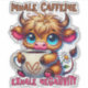 A funny and sarcastic design showcases a cute highland cow with big blue eyes, sitting contentedly in front of a vibrant daisy while holding a steaming cup of black coffee. The cow's soft brown fur adds to its charm. Bright, colourful text reads, "Inhale caffeine, exhale negativity." This delightful design is available on a variety of products, making perfect gifts for coffee enthusiasts.