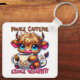 A funny and sarcastic design showcases a cute highland cow with big blue eyes, sitting contentedly in front of a vibrant daisy while holding a steaming cup of black coffee. The cow's soft brown fur adds to its charm. Bright, colorful text reads, "Inhale caffeine, exhale negativity." This delightful design is available on a variety of products, making perfect gifts for coffee enthusiasts.