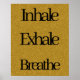 The poster features a stylish typography arrangement of the words "Inhale, Exhale, Breathe" in a retro-inspired font. The soothing colours and vintage design create a visually appealing focal point that effortlessly draws the eye. This poster serves as a gentle reminder to pause, take a deep breath, and find solace in the present moment.