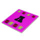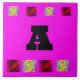 The initial "A" in black with abstract art on magenta ceramic tile.