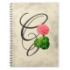 The initial G in script lettering with a vintage botanical illustration of geranium.