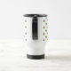 This monogram travel mug is a unique gift for someone special. A gold star pattern appears against a white background. A letter "A" monogram is featured in a centre circle in a golden yellow colour along with a first name. Easily customise the colours and text to suit your desire.