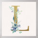 Initial L Golden and Blue Floral Monogram Poster