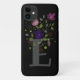 Design features Monogram plus Flowers in a Floral Design. Initial is the letter E. Black Phone case.