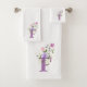 Initial Letter F Plus Floral Design Bath Towel Set