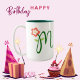 Initial Letter Green Monogram, Orange Flower Two-Tone Coffee Mug
