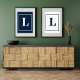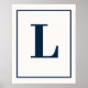 Stylish initial letter monogram poster for print. Modern minimalistic in Navy blue on grey typography. The perfect individual gift or accessory with an individual approach!