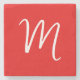 Initial Letter Monogram Stylish Red White Stone Coaster