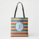 You can be sure never to get your bag mixed up with somebody else's with this primary colour striped tote. The simple yet distinctive stripes and the large circle with your initial on the front will guarantee that.