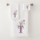 Design features Monogram plus Flowers in a Floral Design. Initial is the letter T. Personal towel set.