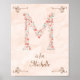 Nursery art print with initial M floral alphabet design and watercolor background.