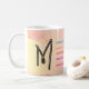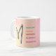 This mug will be a favourite for everyone from your sweet grandma to your teenage sister. With the right message, a mug can become anyone’s treasured companion for years to come. This design features a beautiful, hand-drawn letter "M" in black cursive on a stunning watercolor background. The left side showcases a warm yellow-to-pink gradient, while the right side displays a soft pink-to-yellow gradient. Surrounding the letter are vibrant words in various colours, including blue, orange, red, purple, and pink, highlighting positive traits starting with the letter "M". The overall effect is a visually appealing and uplifting design that celebrates the beauty of the letter "M" and its associated qualities. The watercolor background adds a touch of elegance and sophistication, making this design perfect for inspirational or motivational purposes.