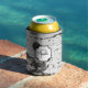This can cooler features a close-up photograph of the white bark on a Quaking Aspen tree. The initial letter and name are set within a double-edged black frame with a white centre. The initial letter, in grey, is set behind the name in black. This initial letter monogram is on both sides of the cooler. Fill in both text fields or remove one or the other text items. The changes will fill in the text for both sides.
