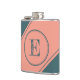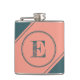 This humorous flask features a centered geometric double circle in teal over a pale salmon background. Personalize the text field with an initial letter or click customize to select a typeface color, size, and style your prefer.