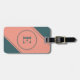 This chic luggage tag features a centred geometric double circle in teal over a pale salmon background. Personalise the text field with an initial letter or click customise to select a typeface colour, size, and style your prefer.