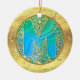 Initial Monogram M Christmas - Gold, Teal & Blue Ceramic Ornament