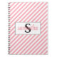 This charming monogram features a serif initial and script first name, making it a delightful notebook for her. With pink and white diagonal stripes, it serves as the perfect journal or diary. Order one today!