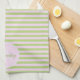 Initial Monogram & Name Pastel Pink Green Striped Tea Towel