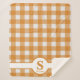 Initial Monogram Orange and White Plaid Sherpa Blanket