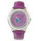 Initial Monogram Purple Pink Blue Clock Art Girl's Watch for Kids. Leather strap.
