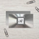Professional, Promotional Silver Metallic Look Cards. A classy, cool, and unique platinum bent metal plain surface look design in silver stainless steel look is a bold, strong, modern business card. Silver artistic design metal plate is on the front and also on the back. Easily add your initial monogram, company name or your name, etc. on the front and any information on either or both sides. The perfect professional-looking card especially for industrial, construction and building occupations, and skilled trades, or retail and wholesale sales, such as the gold, silver, aluminium metals, or jewellery trades. Printed on paper, not actual metal. A strong business card that stands out from the rest. This card can also be used for graduation, engagements, weddings, anniversary parties, etc.