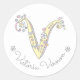 Pretty girls monogram name sticker ideal for embellishing books and to personalised girls items. Stickers reads V Victoria Vernon or you can personalise with your own name or surname starting in V. Decorative capital letter V with hearts and flowers art © Designed by Sarah Trett www.sarahtrett.com for www.mylittleeden.com