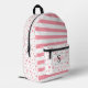 This charming monogram features a serif initial and script first name. With pink and white stripes and abstract pink flowers, it's the perfect backpack for your little one. To personalise monogram, just click 'personalise this design', enter your information and zazzle will do the rest. Order yours today!