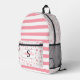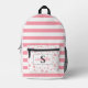 Initial Monogram with Pink Stripes and Flowers Printed Backpack