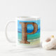 Initial Monogram Letter P on Beach, a great mug for him or her for Birthday Christmas Father's Day or any time!