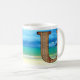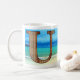 Initial Monogram Letter U on Beach, a great mug for him or her for Birthday Christmas Father's Day or any time!