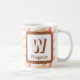 This monogram mug is a great way to add an unexpected to your morning routine. A pink and coral geometric pattern appears against a cream background. The letter "W" is featured in a square along with the family name. The letter and your name can quickly and easily be personalised.
