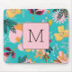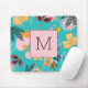 Initial Nature lovers Blue Pink floral Abstract Mouse Pad